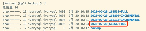 cd /backup pg_combinebackup 2025-02-20_161530-FULL 2025-02-20_161808-INCREMENTAL 2025-02-20_162115-INCREMENTAL -o 2025-02-20_66666-FULL